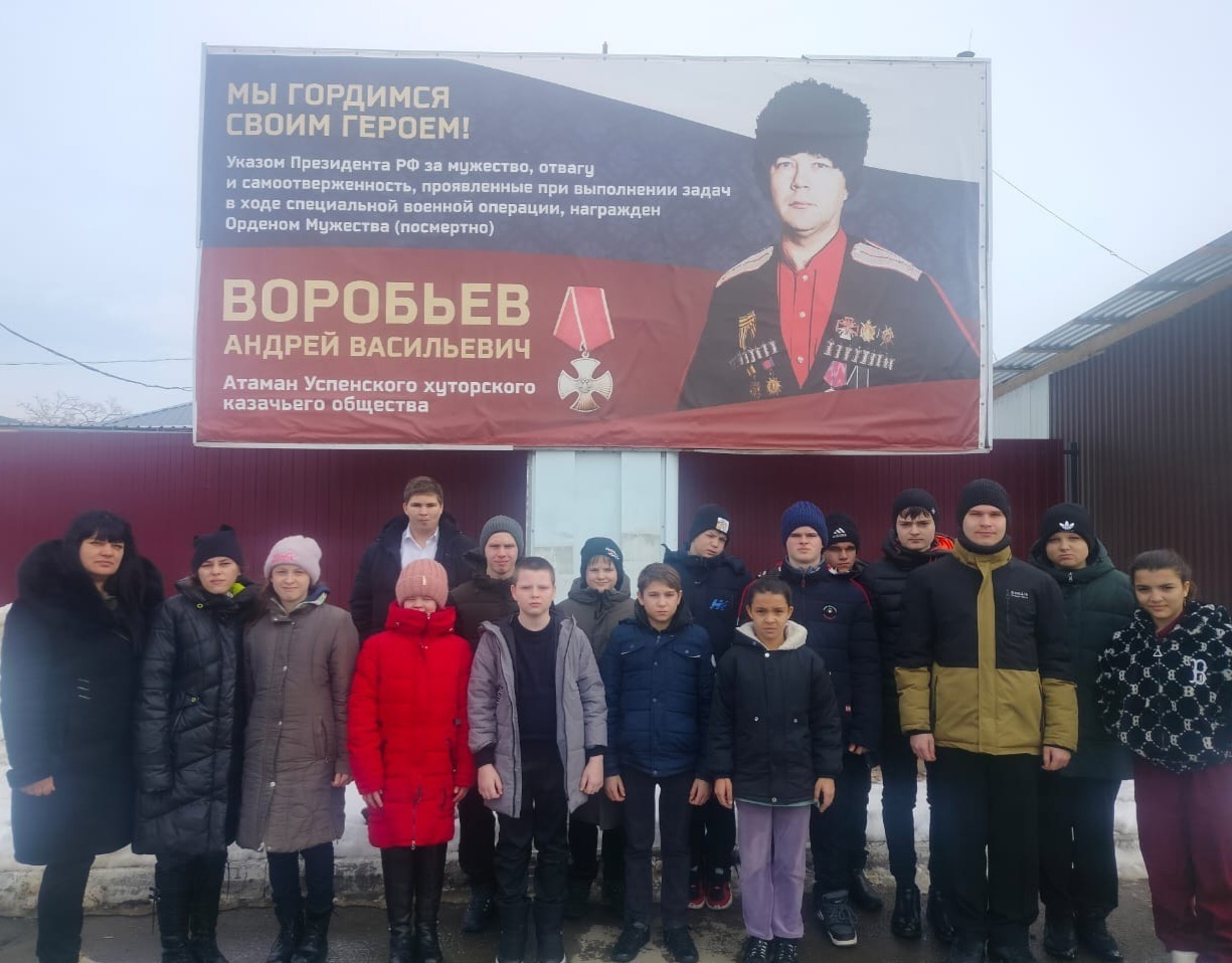 Познакомились с биографией Воробьева Андрея Васильевича, который был атаманом Успенского хуторского казачьего общества. Погиб при исполнении служебного долга.