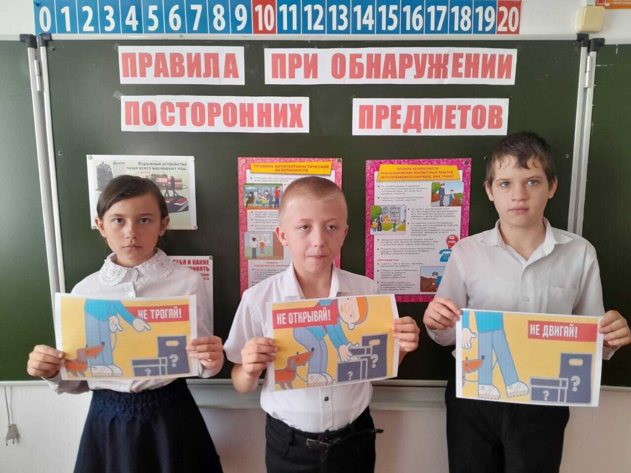 Классный руководитель Беленькова Ю.А. рассказала, какую опасность могут представлять посторонние предметы, найденные в общественных местах, а также ознакомила учащихся с алгоритмом действий при возможном теракте.
