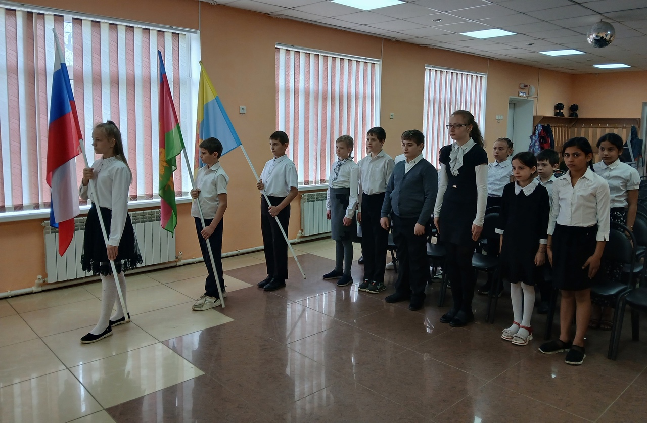 17 марта новая учебная неделя началась с церемонии выноса государственного флага и исполнения гимна Российской Федерации