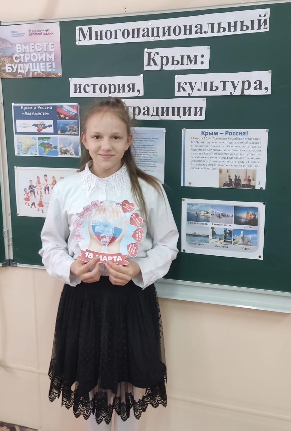 19 марта воспитатель Волосова Н.Ю. провела в 5 классе занятие на тему: «Многонациональный Крым: культура, история, традиции».