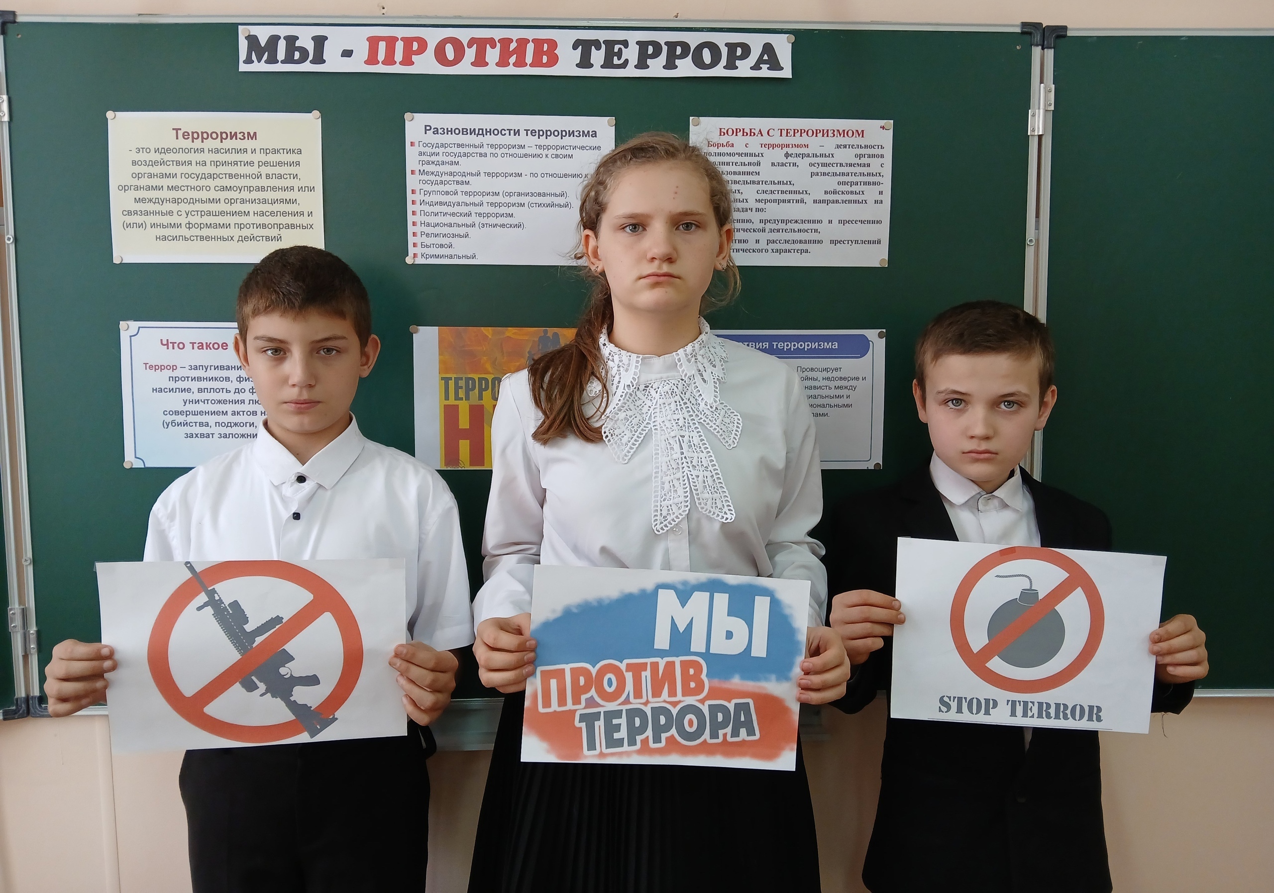 2 апреля классный руководитель 5 класса Щербак А.В. провела с учащимися беседу на тему «Мы против террора».