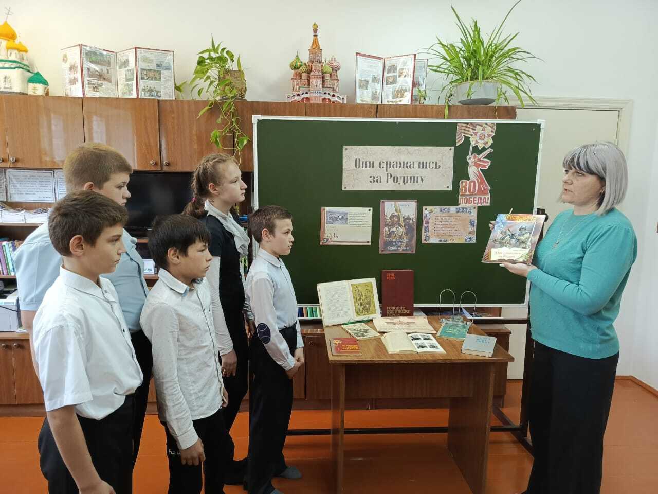 «Они сражались за Родину!» — так называется книжная выставка , организованная педагогом- библиотекарем Шабалиной А. А.
