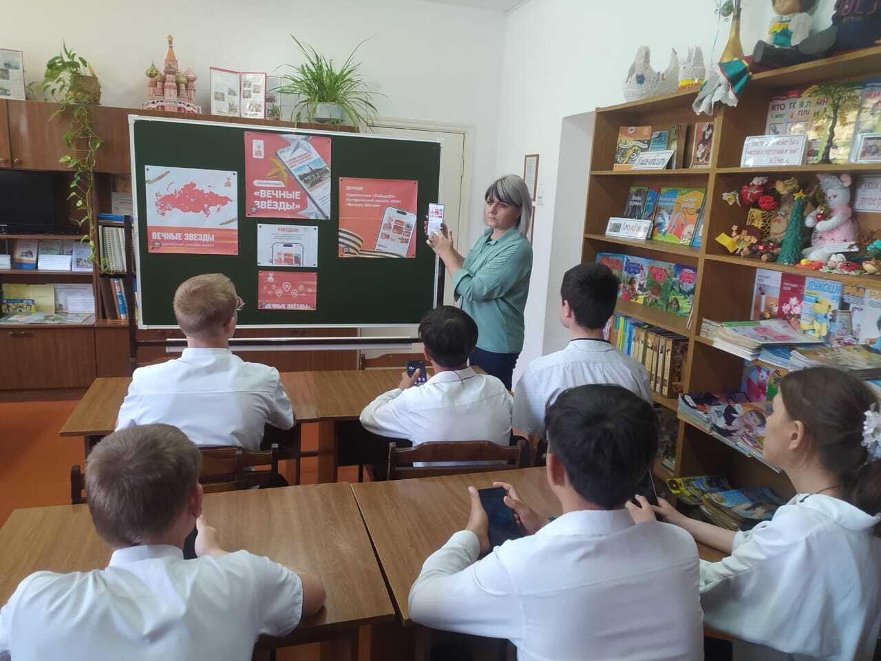 24 апреля учащиеся 9 класса совместно с педагогом- библиотекарем приняли участие в онлайн- квесте «Вечные звёзды».